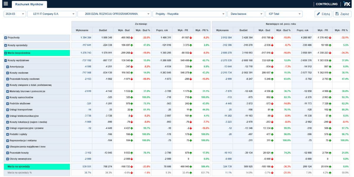 Tak, w Fincorex® można tworzyć szczegółowe grupy uprawnień i przypisywać dostęp użytkownikom wyłącznie do danych potrzebnych w ich pracy. Przykładowo, PM-owie analizują rentowność tylko własnych projektów, KAM-owie planują i monitorują przychody od swoich klientów, a szefowie MPK widzą wyniki finansowe wyłącznie swojego działu.