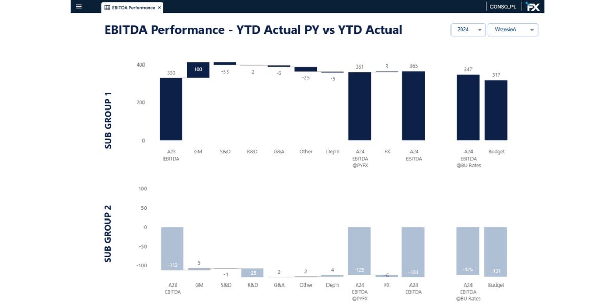 Spółka potrzebowała sprawnego narzędzia do controlingu umożliwiającego przygotowanie rocznego budżetu per każdy dział oraz comiesięczne śledzenie jego wykonania. Koszty wydziałowe planowane per MPK, przychody są dodatkowo rozbite na projekty.